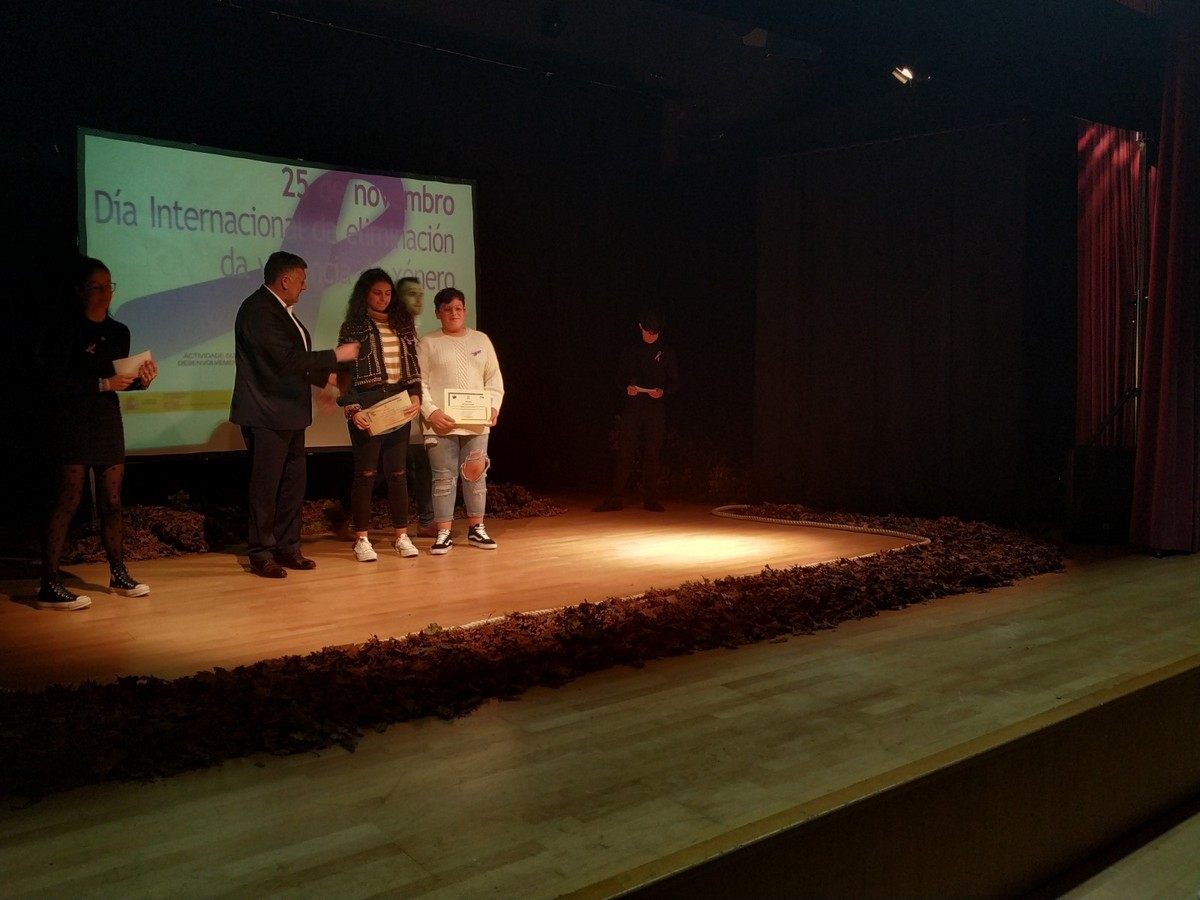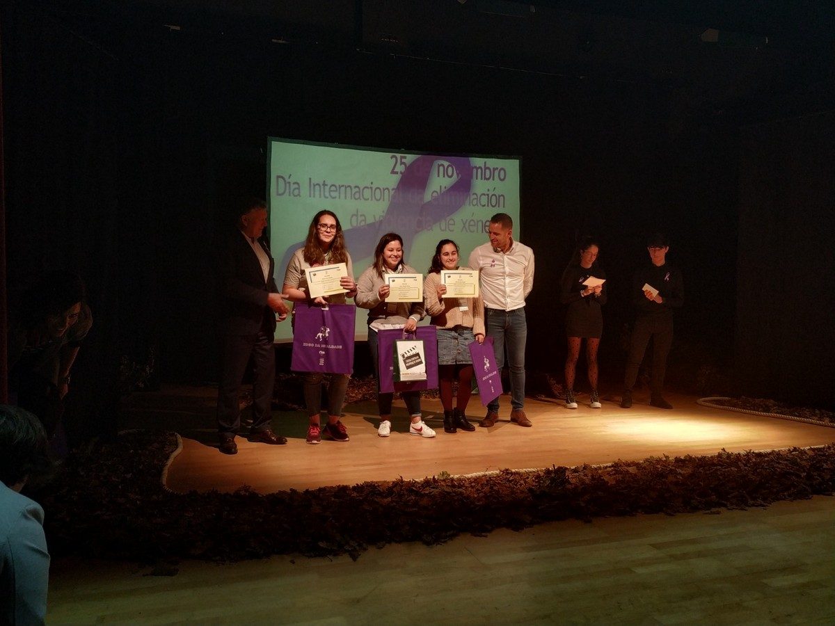 Durante este mes desenvolveuse nos centros de secundaria do noso concello o 2º concurso de guións cinematográficos » Curtas contra as violencias de xénero» no que o guión gañador adquiría o dereito á gravación dunha curtametraxe sobre o tema. Por segundo ano consecutivo o primeiro premio recaeu nun alumno do noso centro, Javier Reina Otero de 3º ESO, co seu guión «Un día máis, un caso menos». A entrega de premios realizouse este luns, 25 de novembro, no auditorio Emilia Pardo Bazán. No acto se visionou a curtametraxe e tamén resultaron premiadas cun terceiro posto as alumnas de 4º ESO, Laura Jamardo Cores, Desiré Peón Santos e Julia Soutullo Parada, e cunha Mención especial do xurado, Nayara Torres Soage e Noel Castro Carrera de 3º ESO.