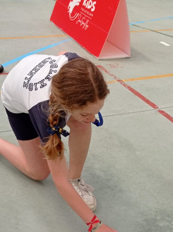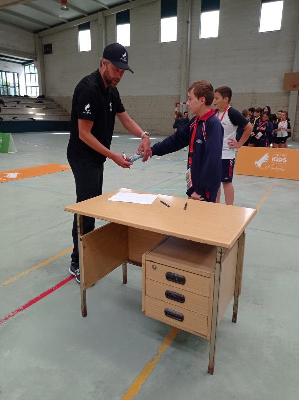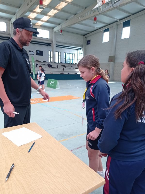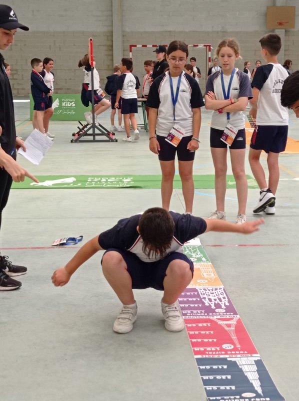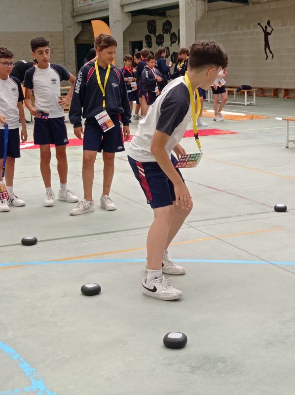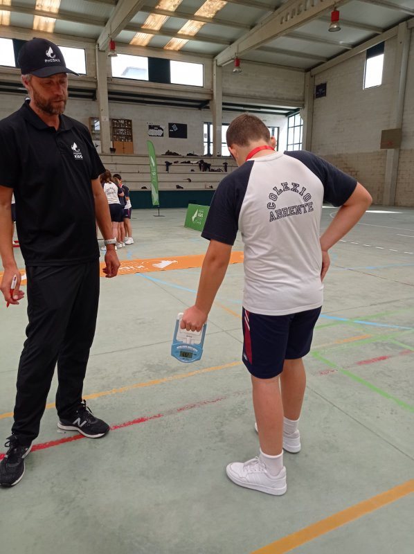 Cada alumno recibiu unha acreditación nun cordón, no que escribiu os resultados obtidos en cada estación. As estacións eran 4 probas de habilidade deportiva: