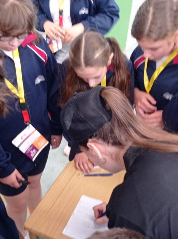 E aínda que Gómez Noya non se puido achegar ao colexio, se o fixeron un grupo de representantes do programa coordinados polo atleta e adestrador Víctor Riobó.