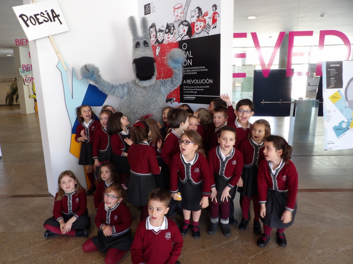 Os alumn@s de Ed. Infantil visitamos o XX SALÓN DO LIBRO INFANTIL E XUVENIL e que nesta ocasión está dedicado a revolución. O seu obxectivo é fomentar a lectura de libros en galego dende a infancia, ao mesmo tempo que aumenta a creatividade e imaxinación dos máis cativos. Puidemos ver unha representación teatro-musical que nos fixo voar o maxín e vibrar coa música, tamén percorremos a exposición e explicáronnos cousas interesantísimas. PASÁMOLO DE RECHUPETE.