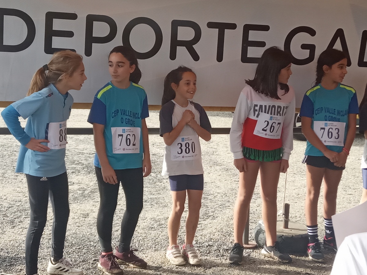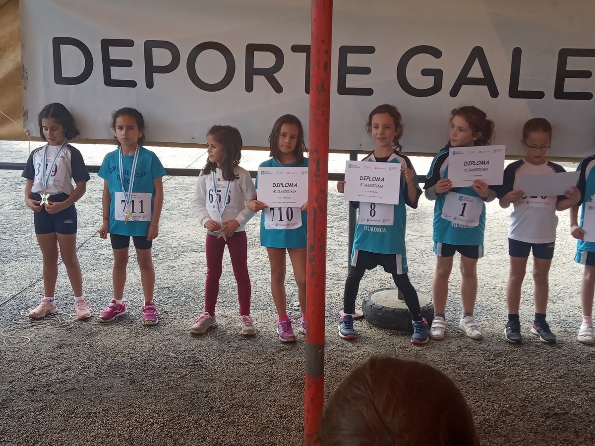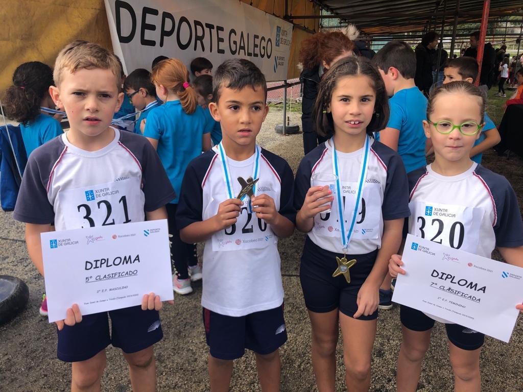 Os nosos alumnos/as pasárono en grande nesta xornada onde o compañeirismo, a convivencia e a diversión priman sobre a competición, aínda que, coma a todos, aos nosos alumnos/as tamén lles gusta gañar, e así o demostraron. En tódalas categorías algún dos nosos atletas, se situaron entre os 10 primeiros postos, podendo destacar a Karol Rivera e a Hugo Padín, que quedaron 1º e 2º lugar respectivamente na categoría de 2º EP, en 3º EP , foi Manuel Rivas o que se subiu ao podium nun merecido 3º posto, do mesmo xeito o fixo Lucía Martínez de 4º EP, pero o máis destacado foi o triplete formado por Marta Basdedios, Aroa Barbeito e Aitana Pérez, seguidas de Branca Dezagoire nun 4º posto e Naira García dun 6º na categoría de 6º EP, onde participaban 78 alumnas de diferentes centros da comarca do Salnés.
