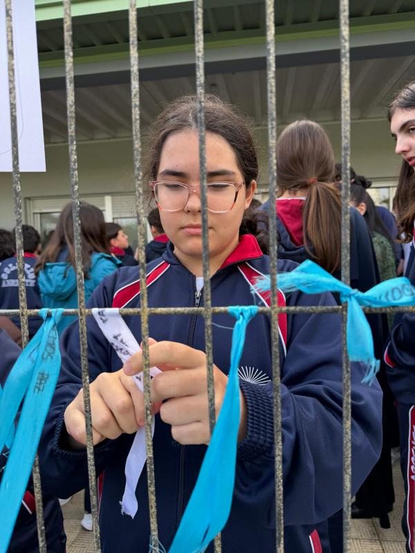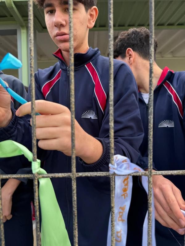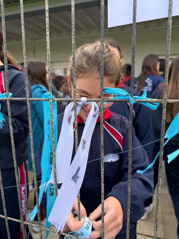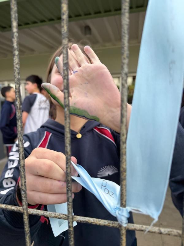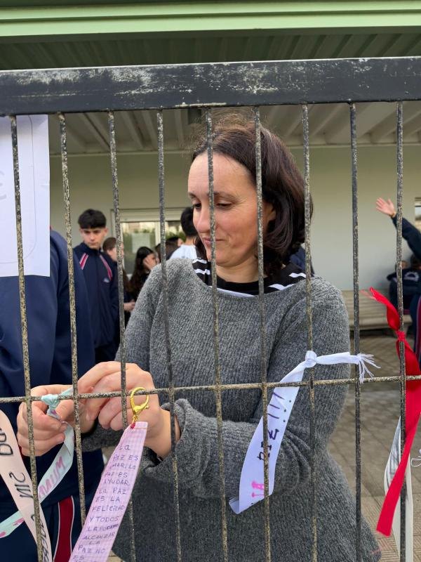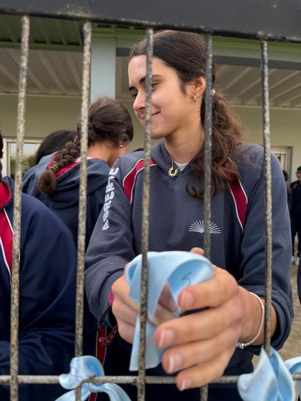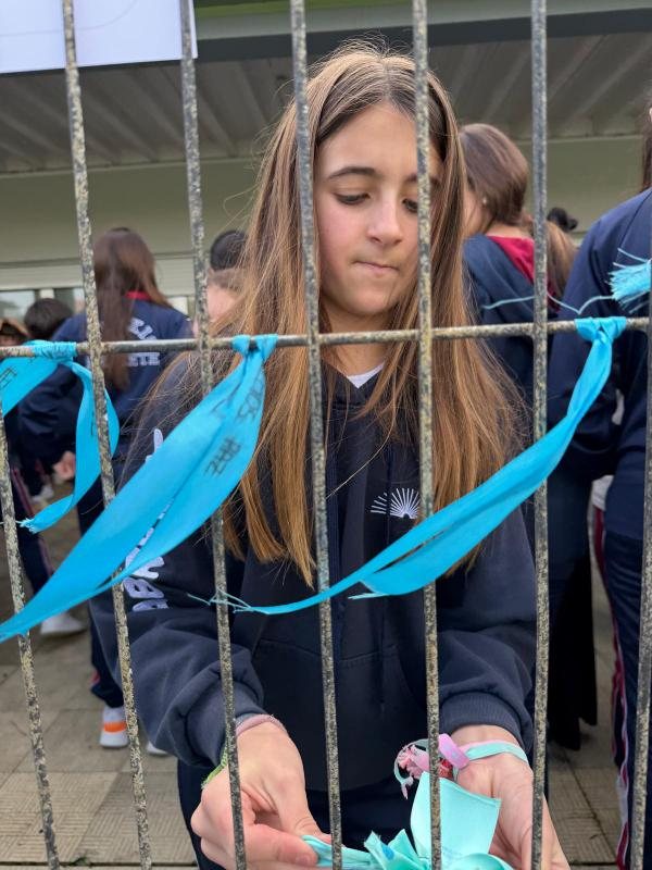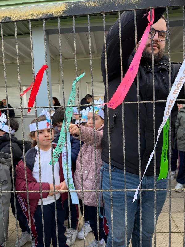 Durante os días previos, nenos e nenas, coa axuda das súas familias, elaboraron lazos de cores nos que escribiron mensaxes, desexos e palabras relacionadas coa paz, o respecto e a convivencia. Estes lazos foron traídos ao centro e, na última hora da xornada, todo o alumnado baixou á entrada principal para atar os lazos no valo do colexio, creando un espazo cheo de cor, simbolismo e esperanza.